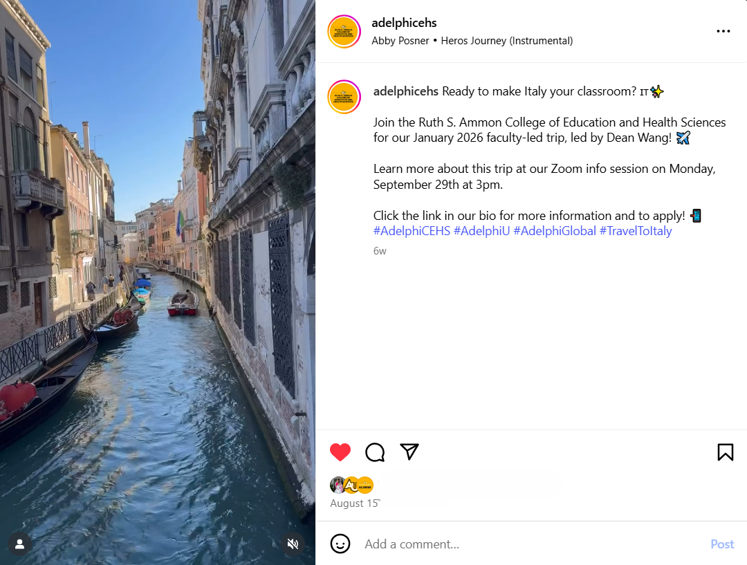 We are committed to empowering our students—many of whom are the first in their families to attend college. Your gift to the Ruth S. Ammon College of Education and Health Sciences helps fund transformative learning experiences with a clear pathway to earning a degree and achieving career success. Your generosity supports vital scholarships, innovative curricula, and opportunities for study abroad and service-learning. Every contribution brings Adelphi closer to our goal to raise $100 million for The Momentum Campaign: Extraordinary Impact. |
